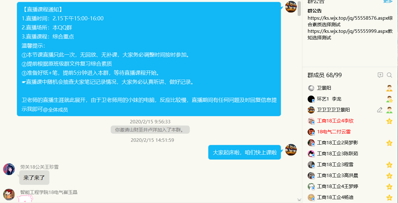 本次教师资格证班线上教学,采取班级群内直播的方式进行授课,课前由大圣教育辅导员老师下发通知,课中随时互动提问保证授课质量,课下进行学生学习情况检查。并且每天对于学生进行线上答疑,了解学生在家学习进度,对问题做出第一时间的解答。